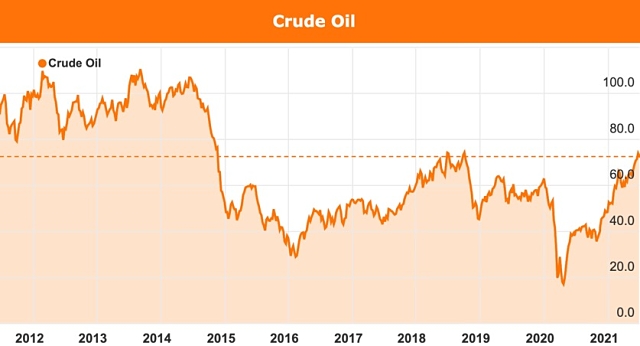 Currie reckons the global economy is emerging so rapidly from the Covid slowdown that oil consumption has risen from 95 million barrels per day to 97MMbpd in just a few weeks with an oil glut created during the slowdown being quickly drained.
