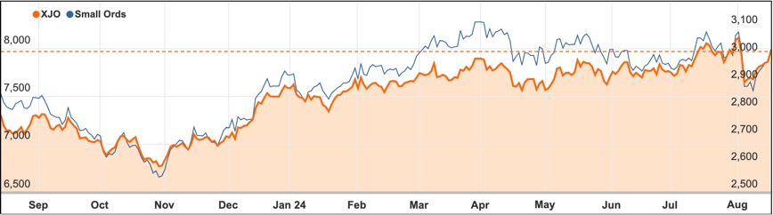 The Small Ords index rallied 3.29% this week to close at 3022 points.